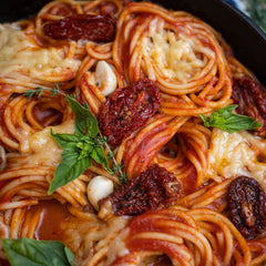 - Combinar el tempeh, champiñones y zetas con el queso mozzarella y cheddar a fuego lento en un sartén hasta que el queso se funda.